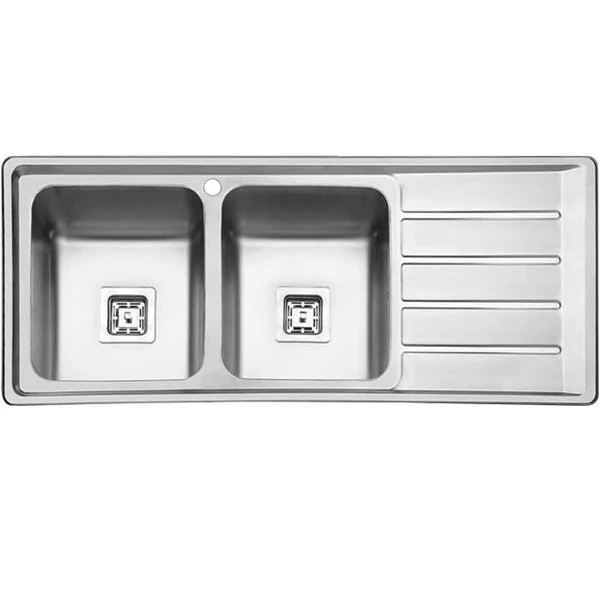 طراحی سینک استیل دو لگنه ، شست‌وشو و آبکشی ظروف را به‌طور هم‌زمان ممکن کرده و کارایی شما در آشپزخانه را افزایش می‌دهد. همچنین لبه‌های ظریف و طراحی مینیمال، این سینک را برای انواع دکوراسیون آشپزخانه، از کلاسیک تا مدرن، مناسب ساخته است.